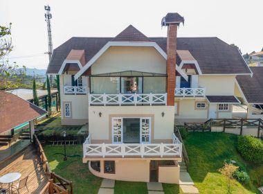 Casa com piscina aquecida, sauna, espaço gourmet, deck, ampla sala de estar, 4 suítes e casa de hóspedes, localizada num dos melhores bairros de Campos do Jordão. Visite!