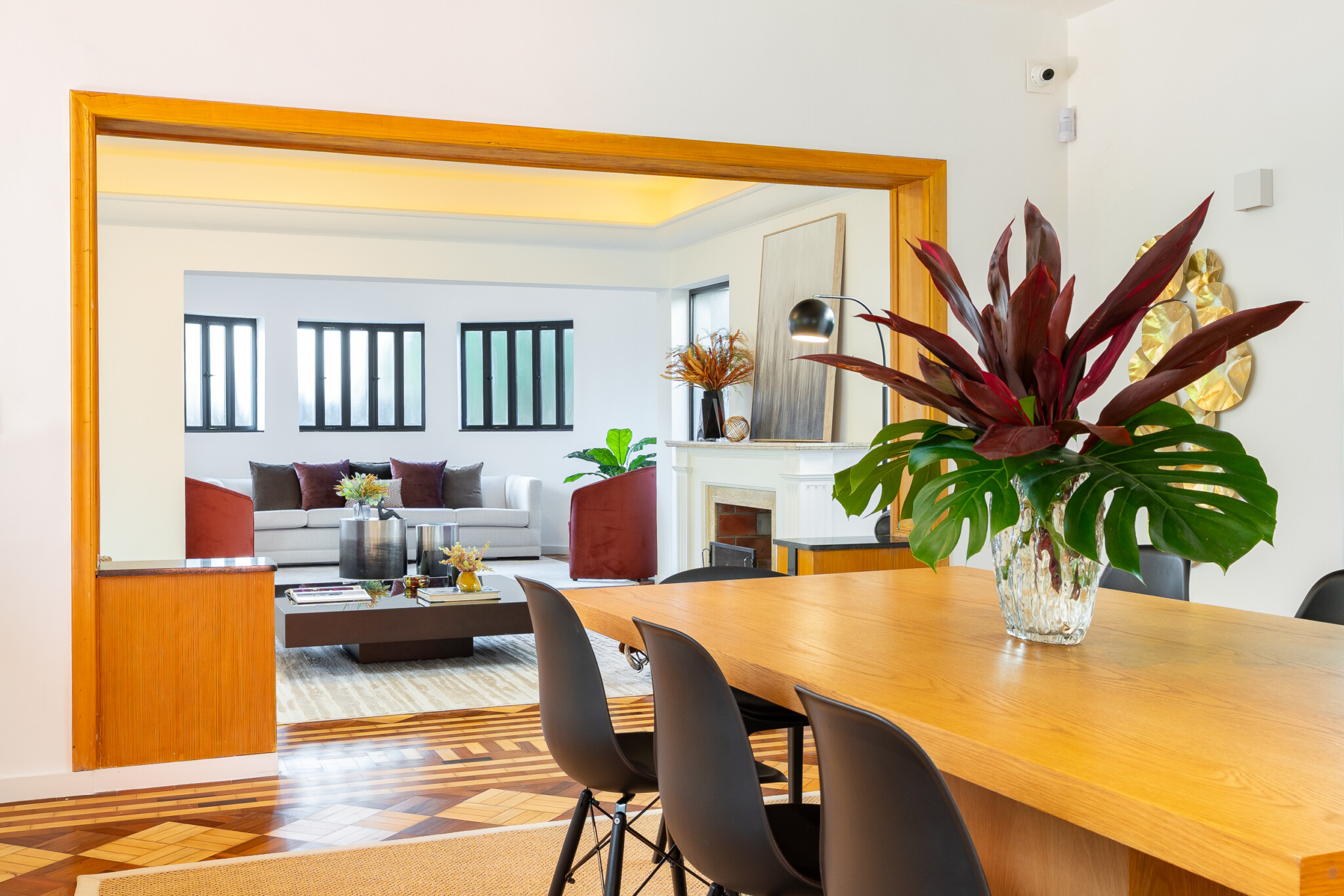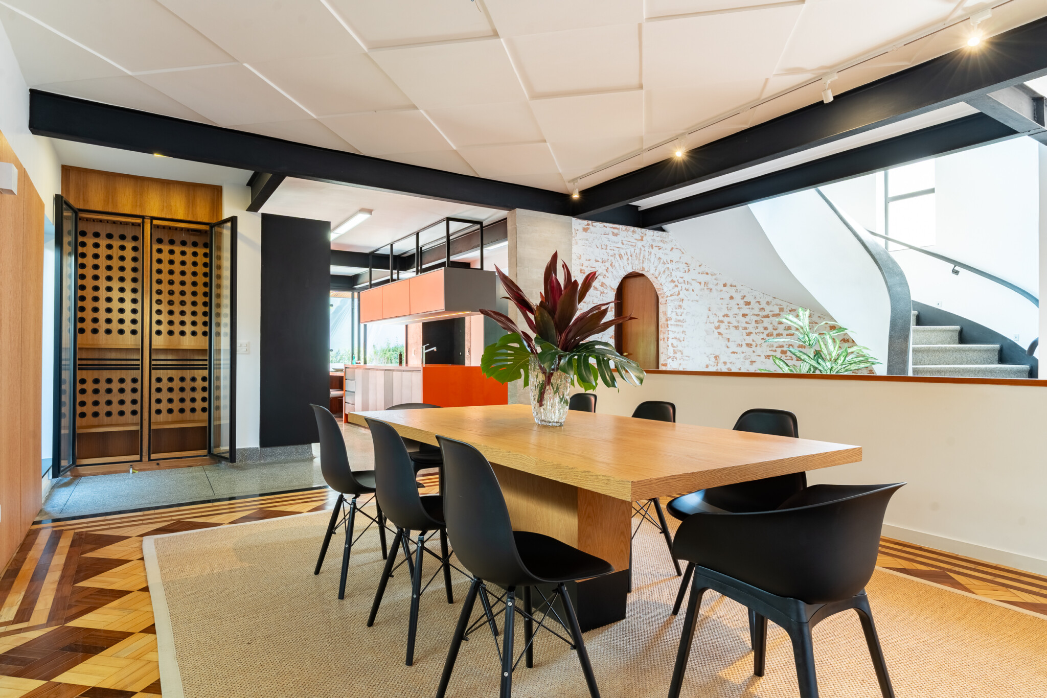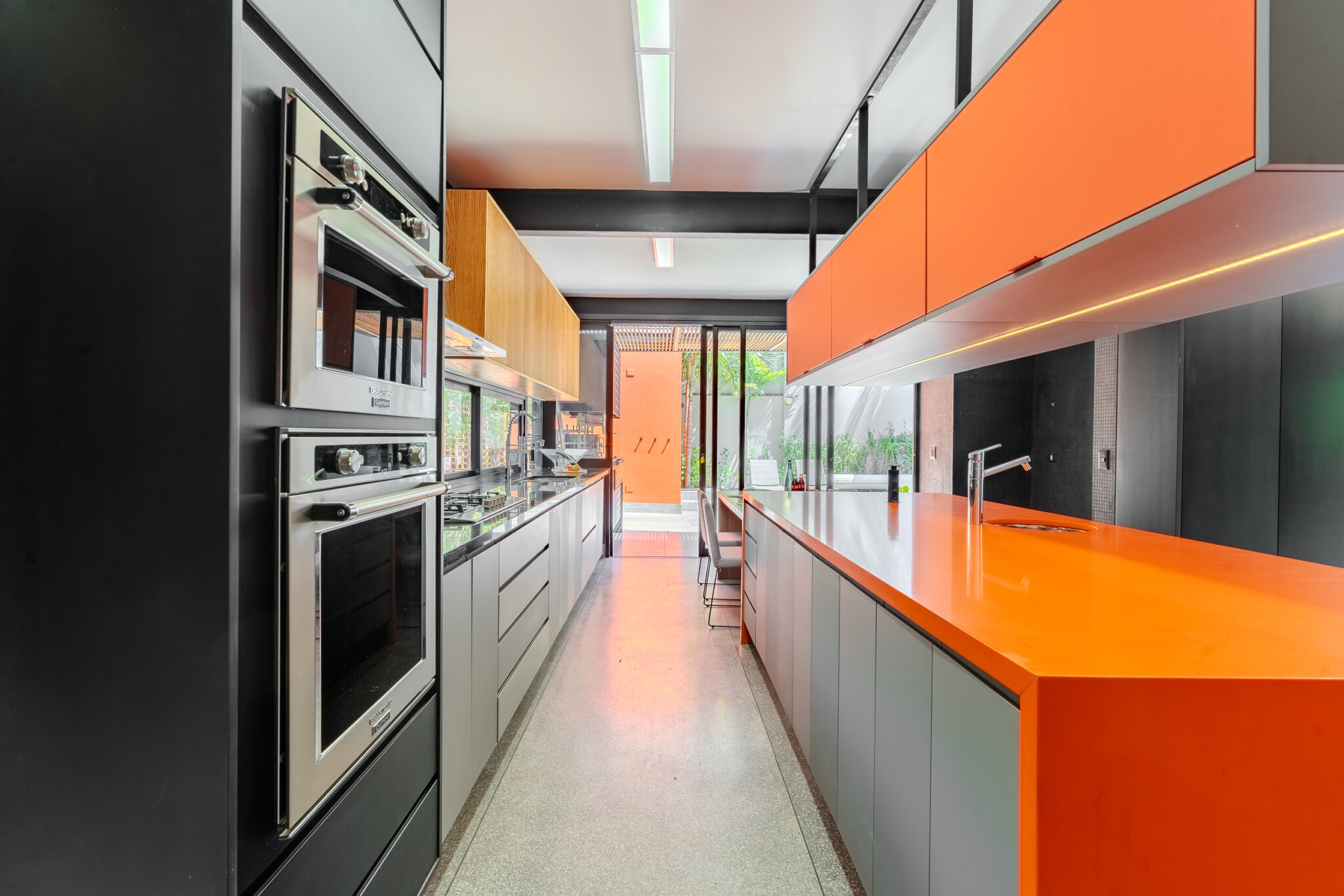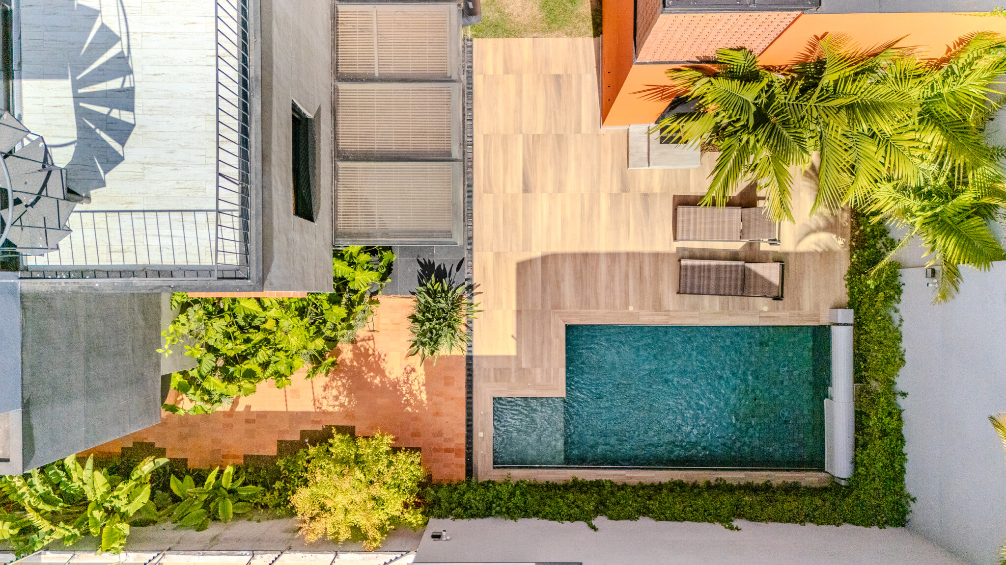 A área útil está distribuída em 3 pavimentos; o térreo com jardim, piscina aquecida, espaço gourmet, cozinha planejada, integrada tanto com a área externa quanto com a área social e living para 3 ambientes.