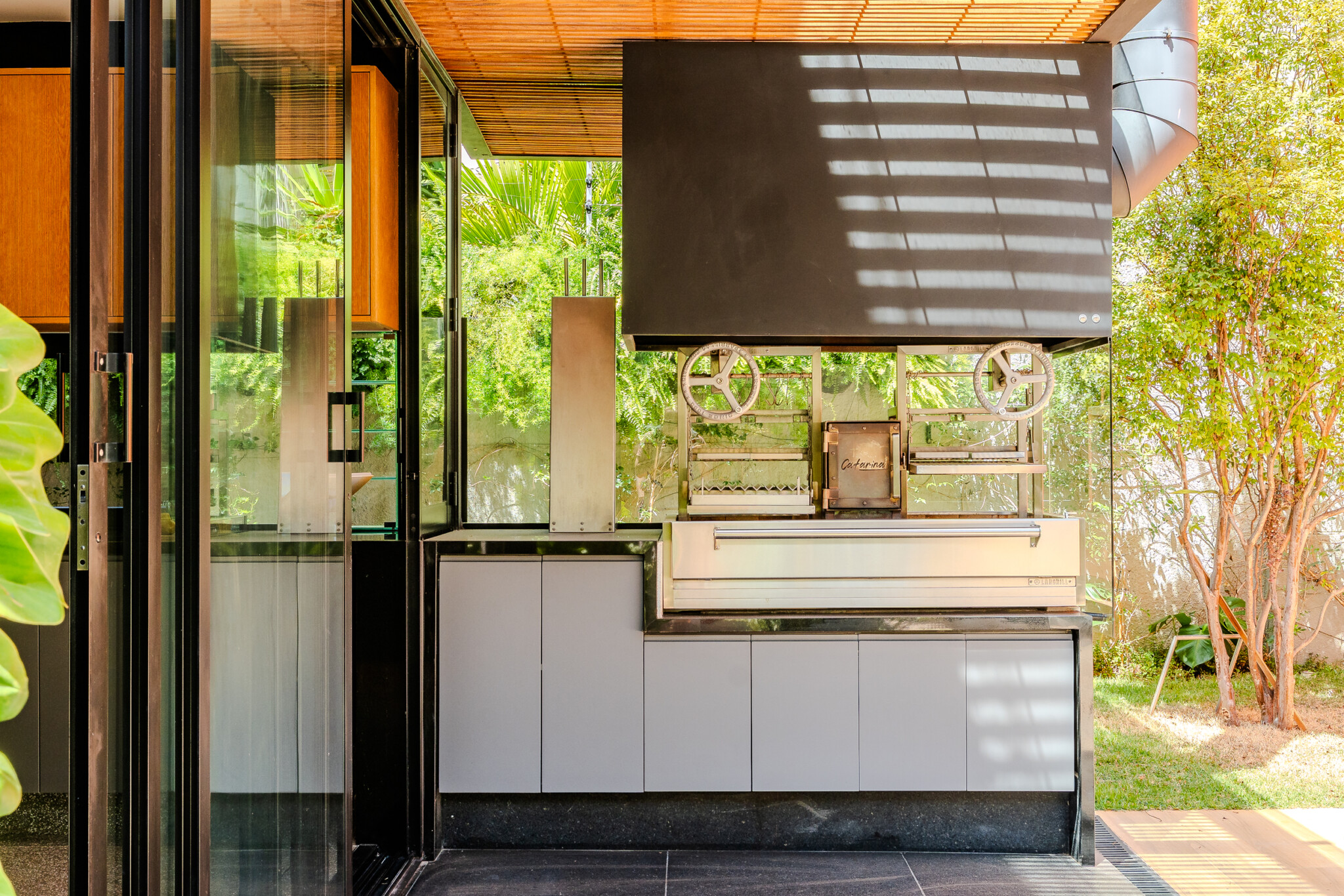 . Garagem para 3 veículos, carregador de carro elétrico, câmeras de segurança, entrada biométrica, paisagismo com iluminação e irrigação automáticas, piscina aquecida com hidro, espaço gourmet com parrilla “LarGrill”, banheiro de apoio, copa, banheiro e quarto para funcionários, cozinha já equipada com cooktop, forno e microondas, adega para 160 garrafas, todas as 4 suítes com ar condicionado, assim como na brinquedoteca e no escritório.