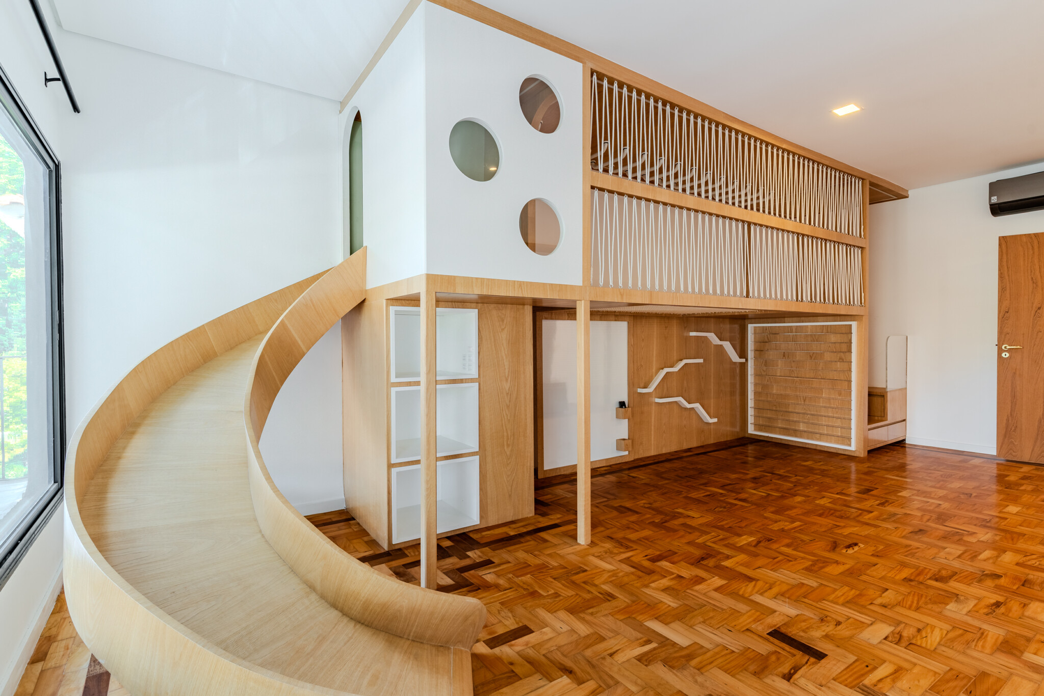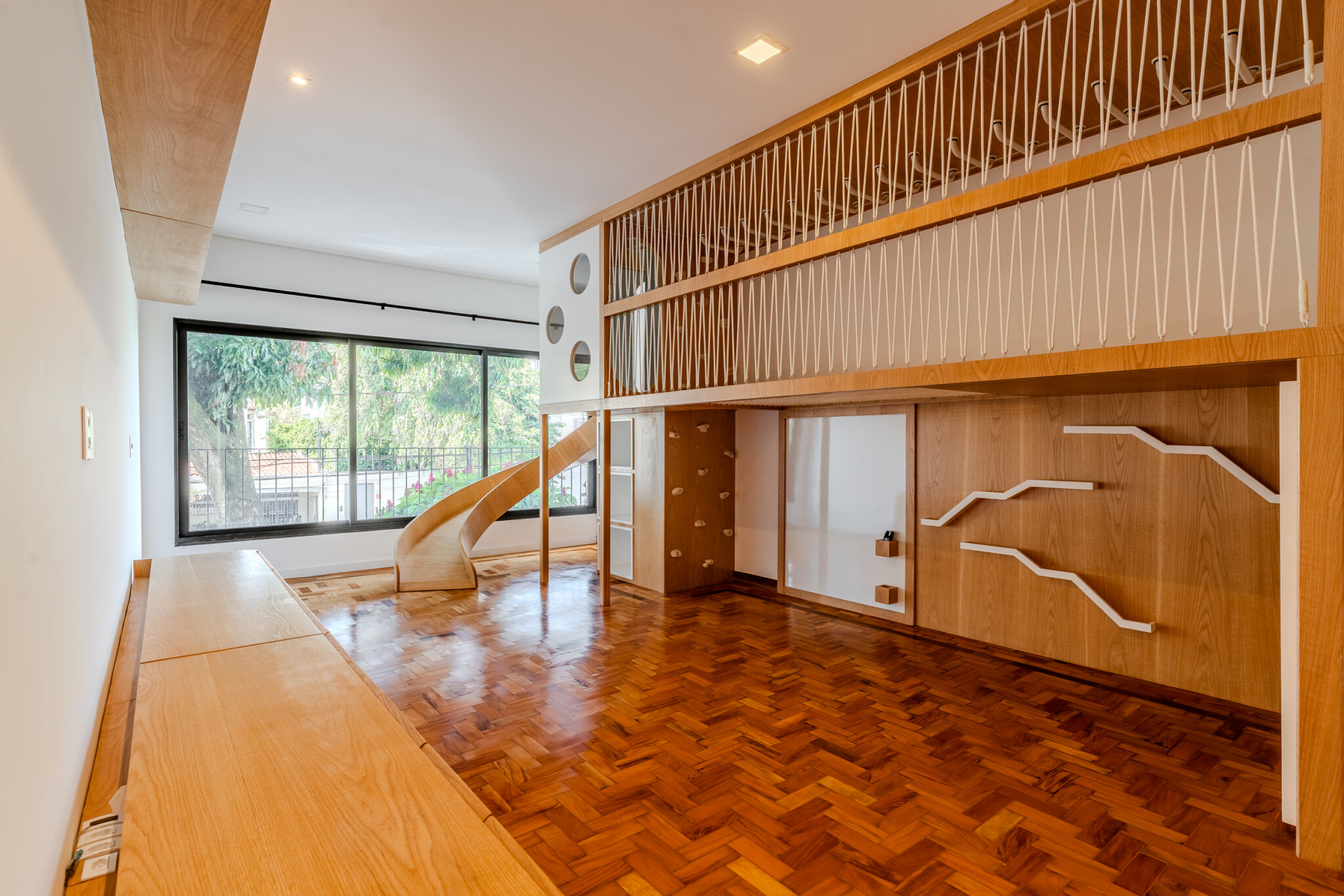 No primeiro pavimento, 3 suítes confortáveis e iluminadas, brinquedoteca e rouparia