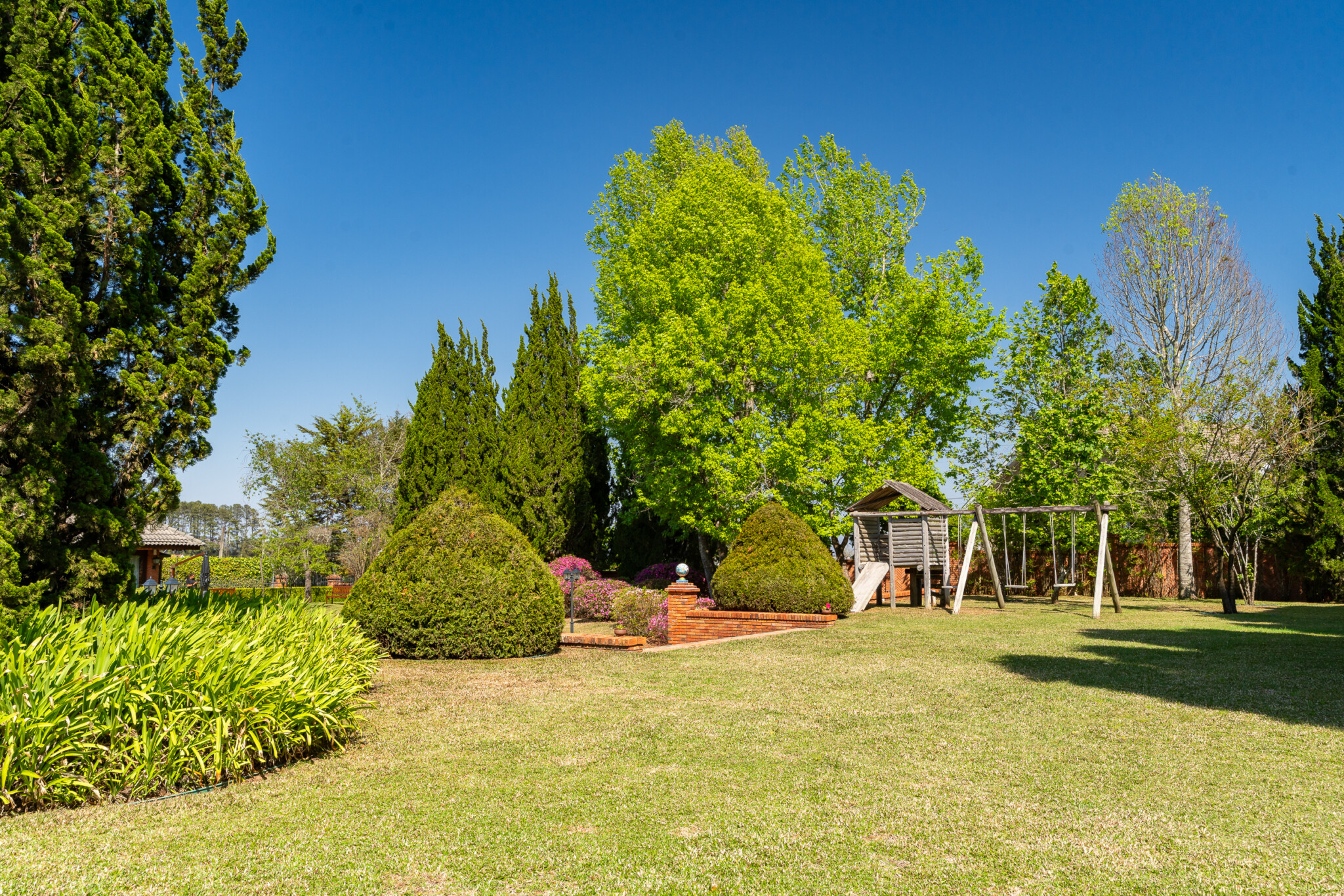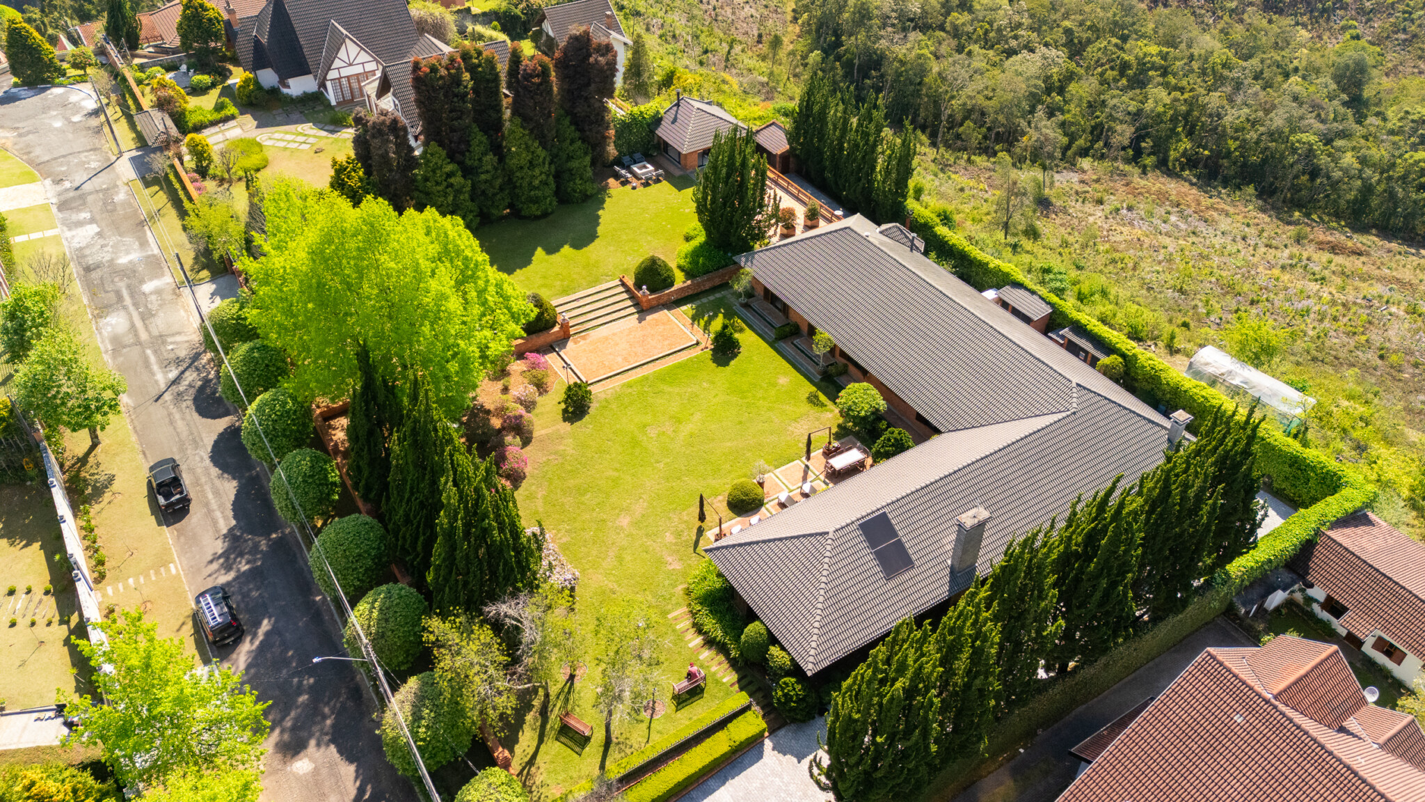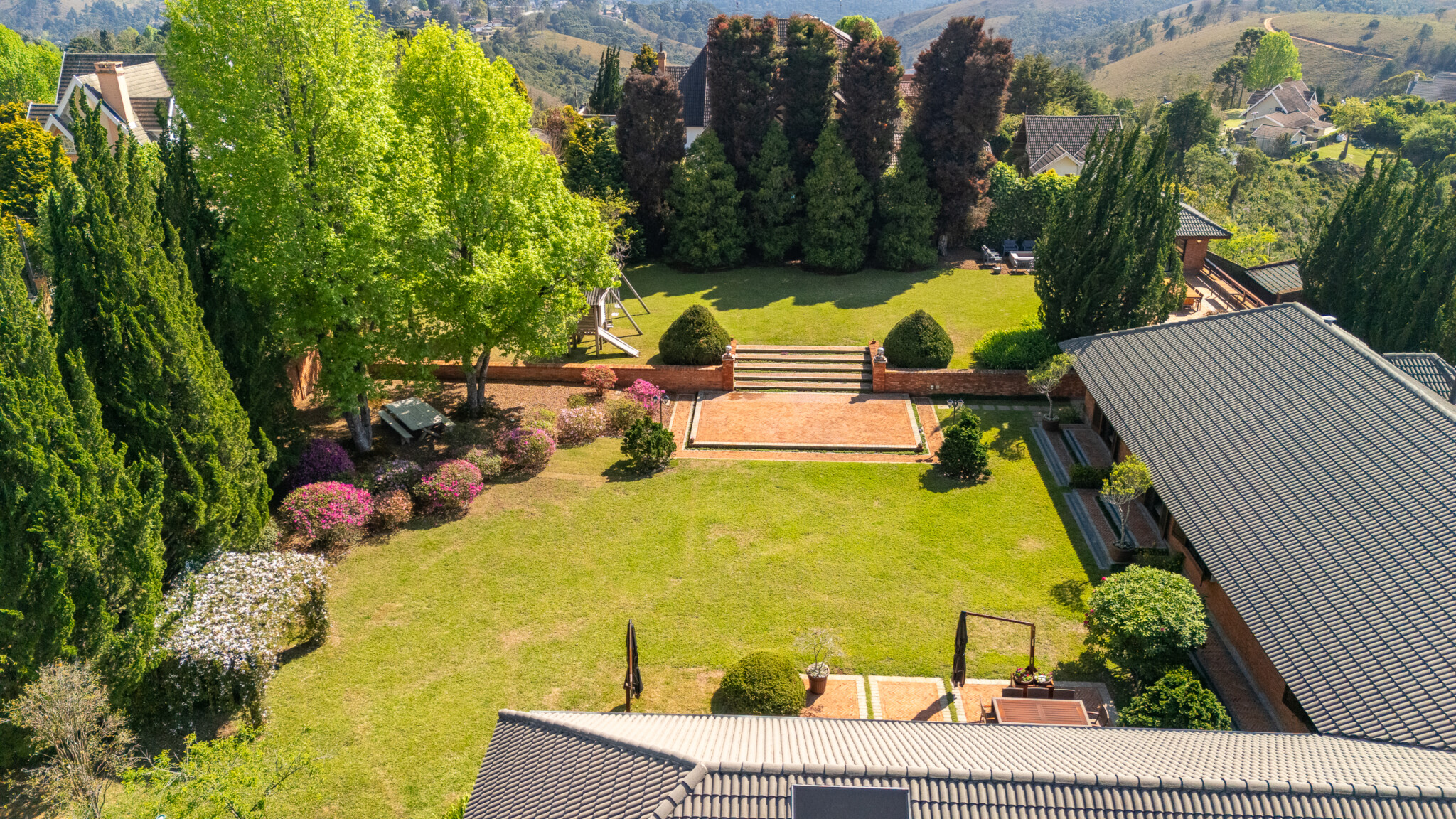Singular! Visitamos inúmeras propriedades durante o ano, mas confessamos que essa nos chamou a atenção. Um platô de quase 3,000 m², incomum para Campos do Jordão, com paisagismo maduro e apropriado, muita privacidade, espaço gourmet com vista para a serra e o estado de conservação simplesmente primoroso, irrepreensível! Seis suítes, casa de caseiros, salão de jogos, adega e horta orgânica. Não é fácil encontrar algo tão especial!