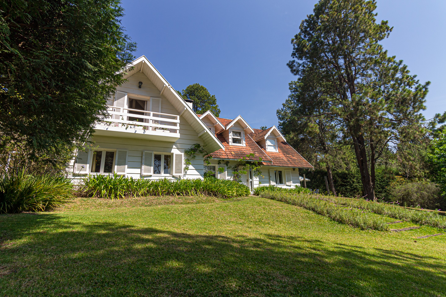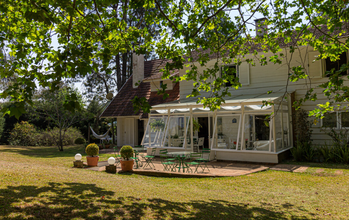 Quando Bebel Alves de Lima projetou e decorou, pensou assim: “um espaço para cada momento do dia”. Podemos começar com o café da manhã no jardim, uma caminhada banhada pelo sol quente da serra, uma passadinha na horta para escolher as verduras do almoço, alongamento na academia, sauna quente e um bom banho de ducha, um aperitivo, o almoço na sala de jantar com fogão à lenha de ferro fundido, no piano Debussy, “Clair de Lune”, um recolhimento ao quarto, o chá da tarde na sala de leitura, quando a noite cai, a sala de lareira e a companhia de uma taça de Bordeaux. Não é exatamente isso que queremos de uma casa de fim de semana? Confortáveis 6 suítes em 9.000 m² de terreno.