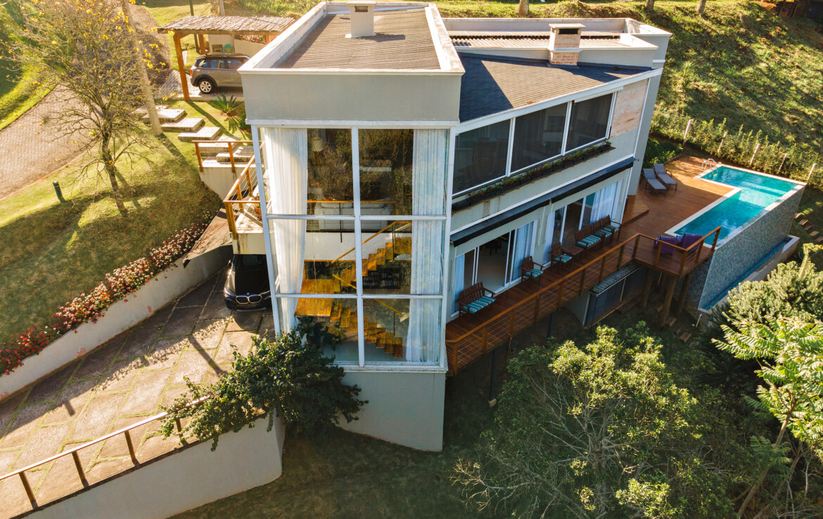 A casa, pousada sobre um terreno com boa topografia, que nos permite curtir o jardim e aproveitar a vista, estava lá, nos esperando de portas abertas. Vontade de se jogar na piscina não faltou, mas ficamos só no cafezinho e mais um bate papo com os proprietários. A tarde estava agradável demais e não dava vontade de ir embora.